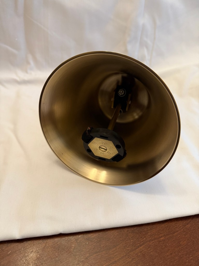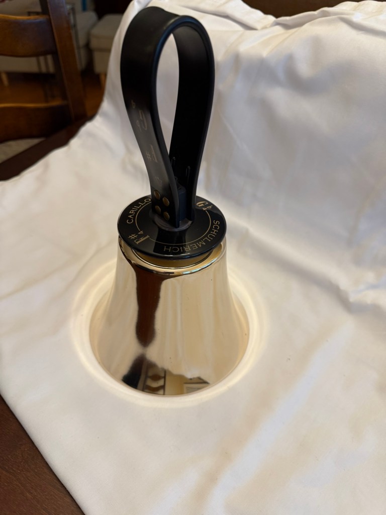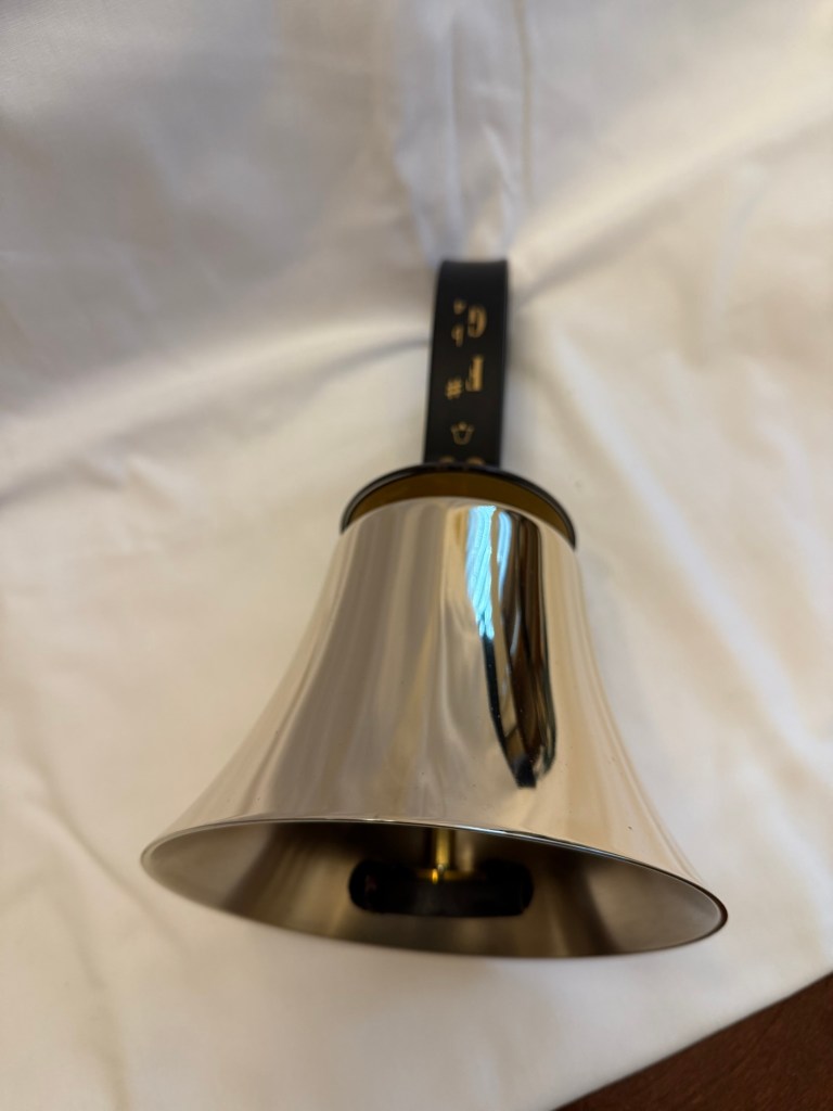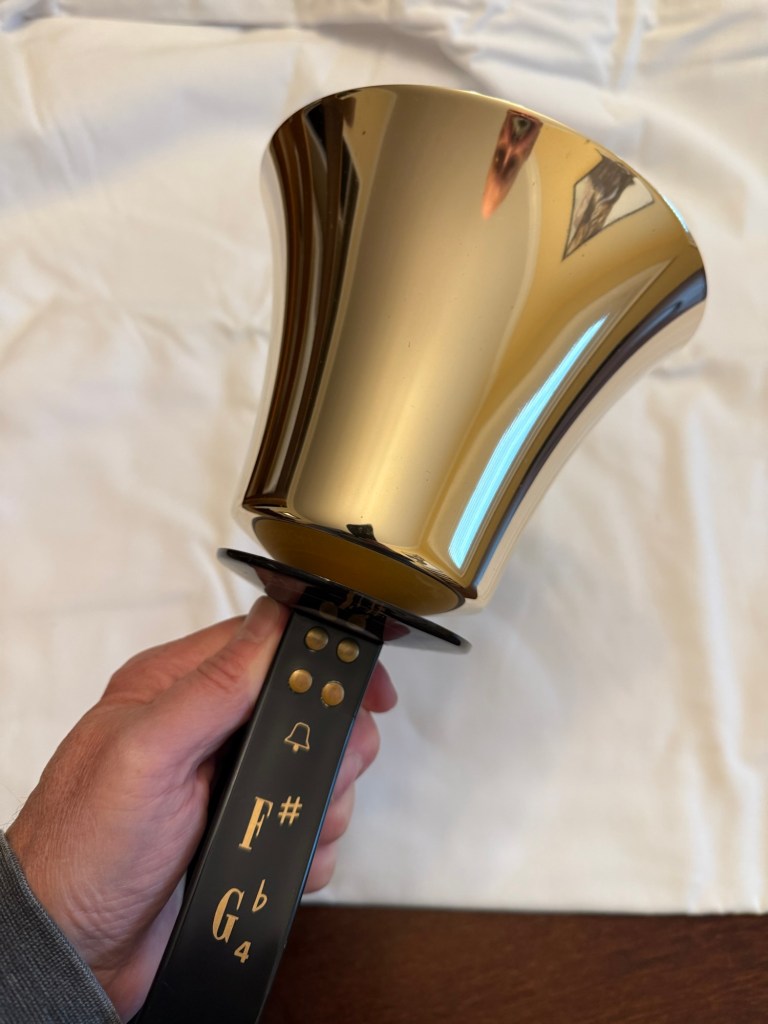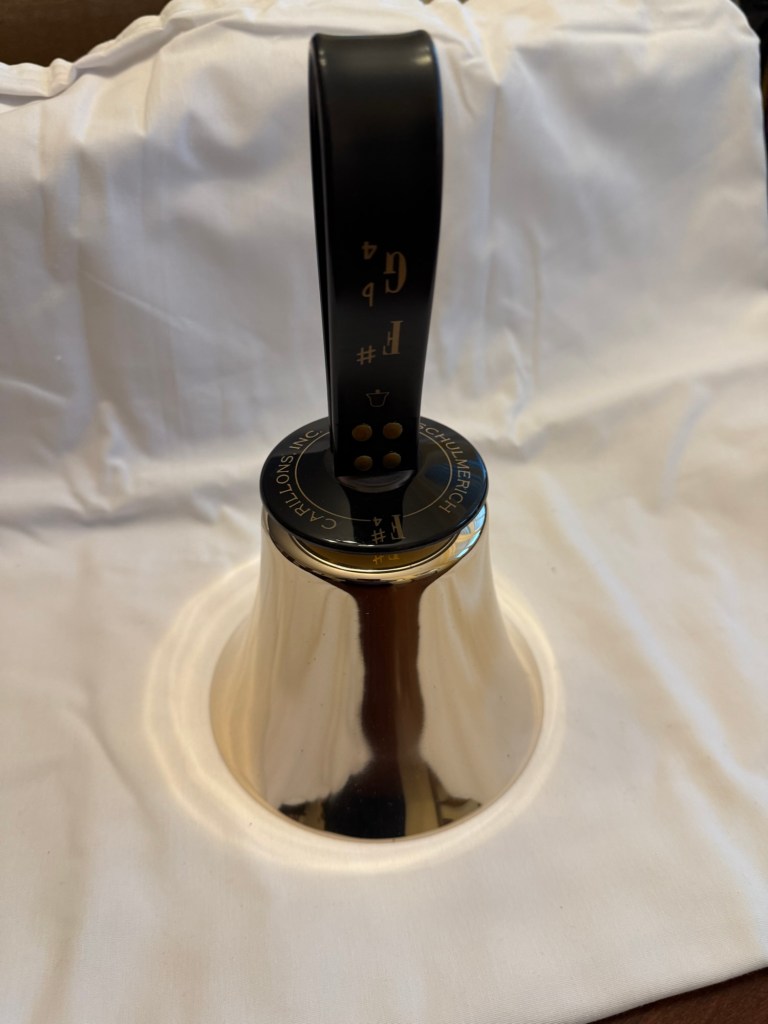 Schulmerich F#4 Handbell This is a used bell in excellent condition. It has the older style handle with the newer handguard. The casting and clapper assembly are in excellent shape. It has a brand new spring and has been freshly polished. Clapper action has been adjusted for optimal playing condition. A new F#4 would sell for $975. This used bell is selling for 50% of that price or $487.50. Shipping and insurance to the lower 48 states for $37.50. Total asking price of $525.